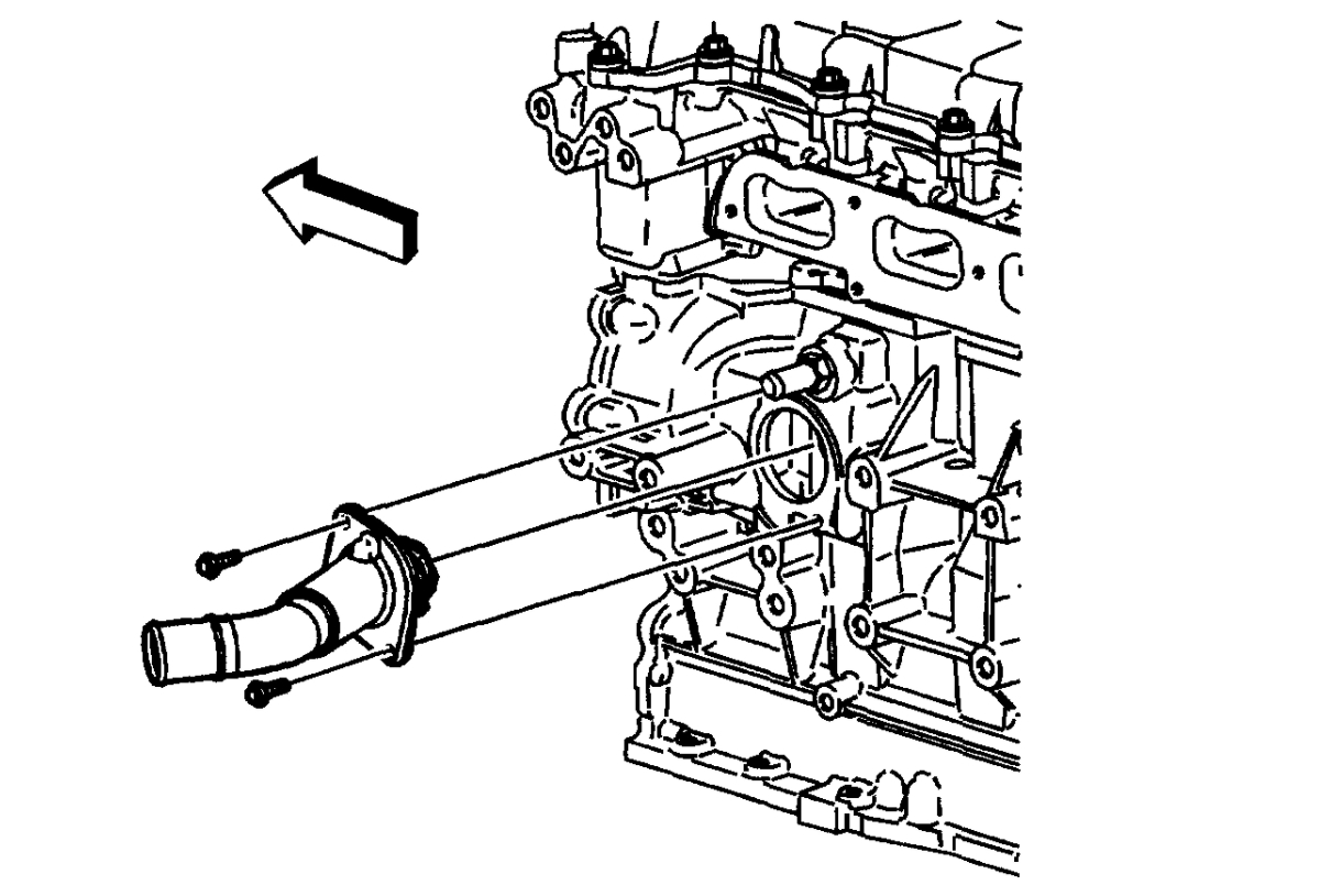 Important: The thermostat is not serviceable separately. The water pump inlet and thermostat must be replaced as an assembly.