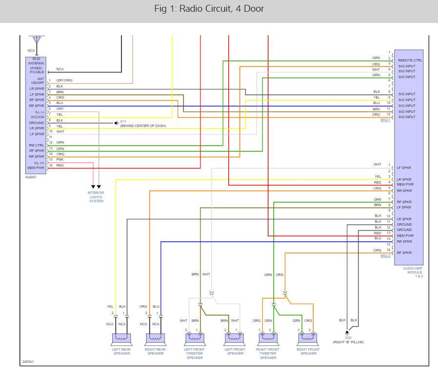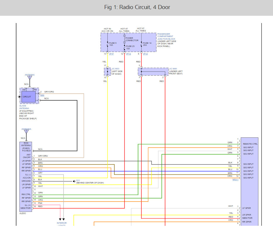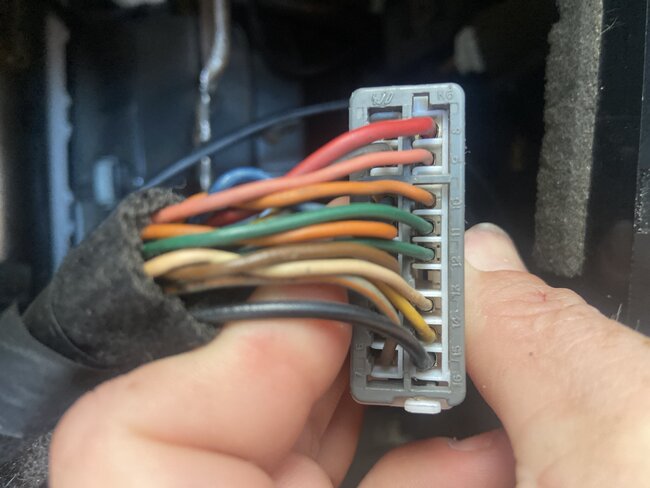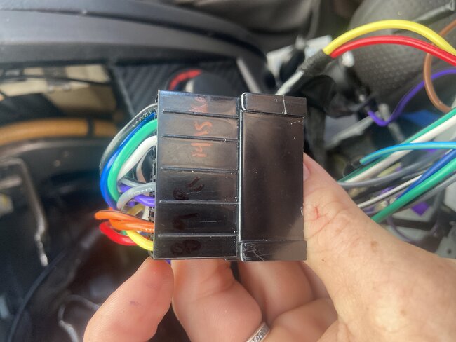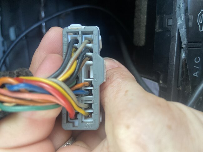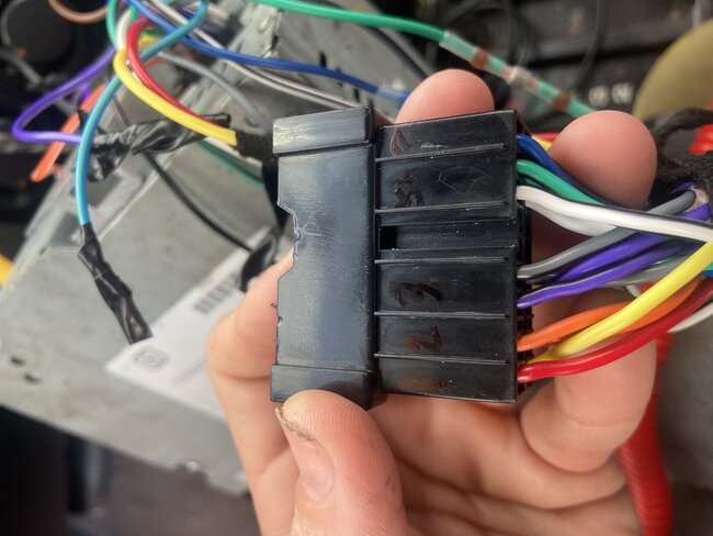 I only have power on the first pin and grounded pins on the radio side “1, 2, 5, 8, 9, 14, 16” weak ground on 14. This is radio harness car off, car on-12v only to pin 1. How does that pave a positive reading and a negative one when cars off? This is the thin yellow wire.
