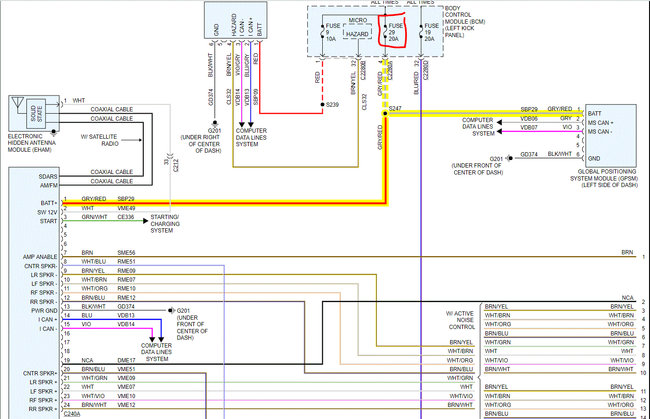 The first two pics below show the wiring harness schematic for the radio. I highlighted the fuse. Pic 3 shows the fuse location in the box. The fuse panel is located under the instrument panel to the left of the steering wheel.