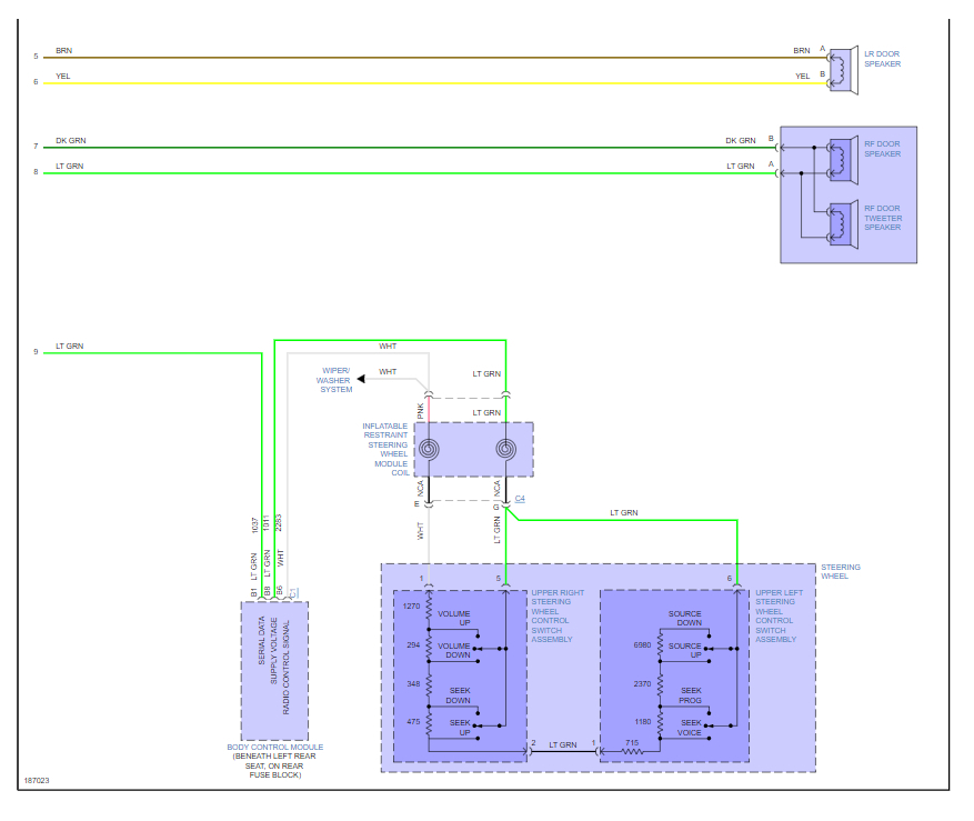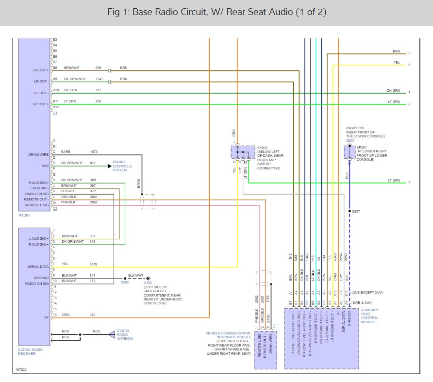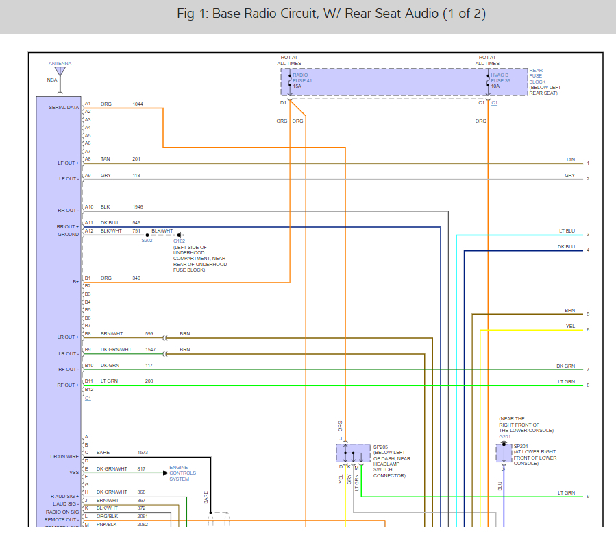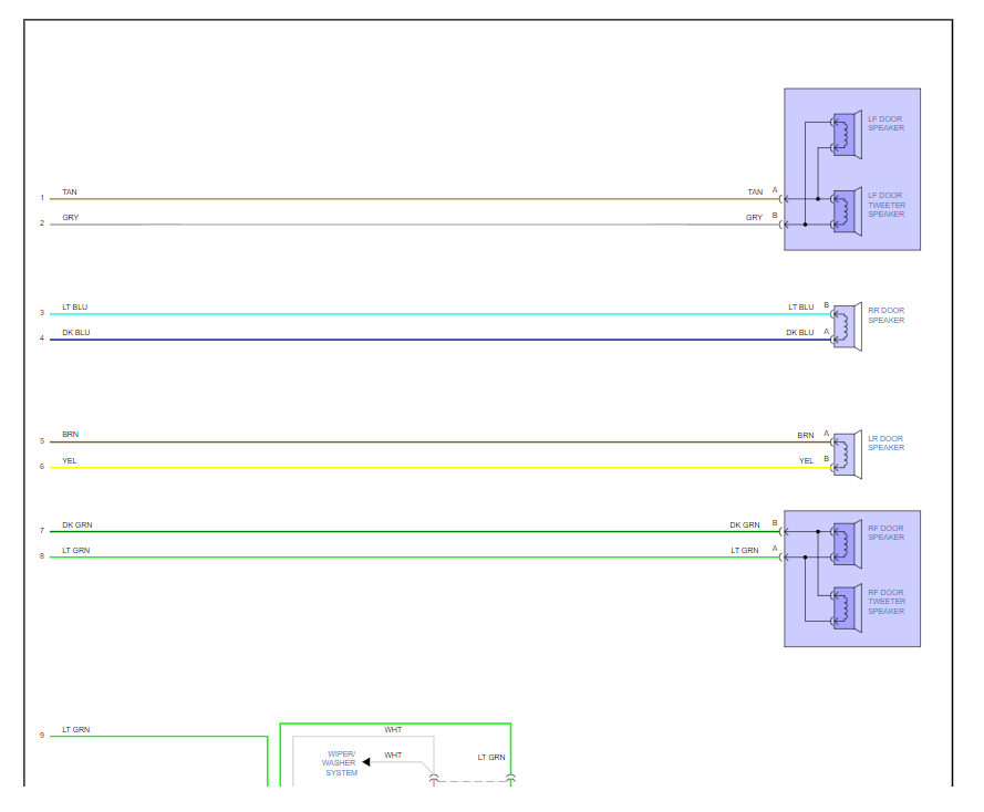 Stereo diagram color codes for the vehicle listed above LS model.