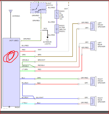 The cassette receiver stereo without a plug on the bask. The wire colors are, red, black, light green, light blue, green, green/black, blue, blue/black, and blue/red. Nowhere on the internet can I fined this combination. Can someone please tell me what the colors go to?