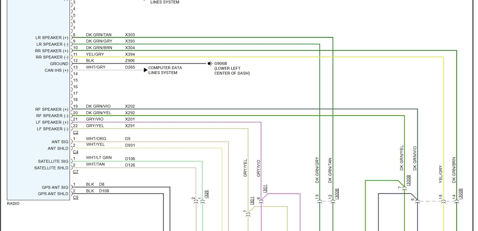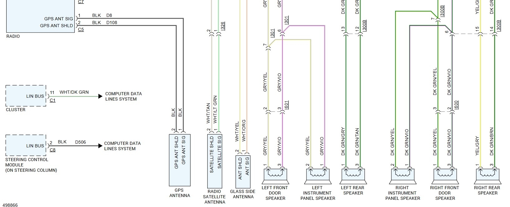 I’m looking for the diagram of the wiring for the radio of my vehicle listed above, it has the 6-speaker system with no sub.