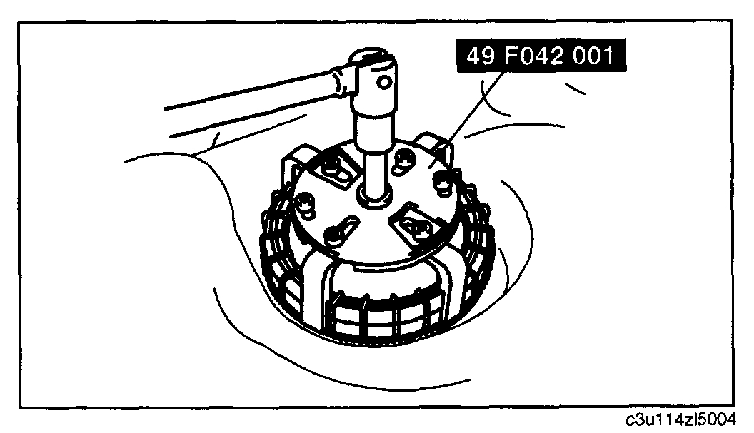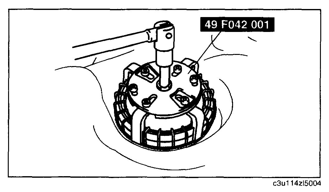 4. Tighten the fuel pump cap to the specified torque and to the specified angle or more.