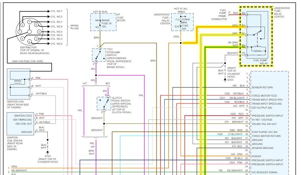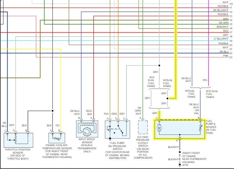 Going back to the fuel relay I used my multi-meter to verify that 86 ground was working, 87 load power was fine, however there was no voltage across 85 (power signal from the PCM). I checked 20amp fuse ECM-b which was fine (the fuse is after the relay but I thought I should mention it even tho it’s kinda a given since power did make it to the fuel pump clip) so I decided to try one last thing before giving up. After manually jumpering 87 to 30 on the fuel relay again I could now here the fuel pump (the original fuel pump is on the assembly) turn on and pressurize the fuel rail under the hood and after turning the ignition I was able to start my suburban and it stayed running.