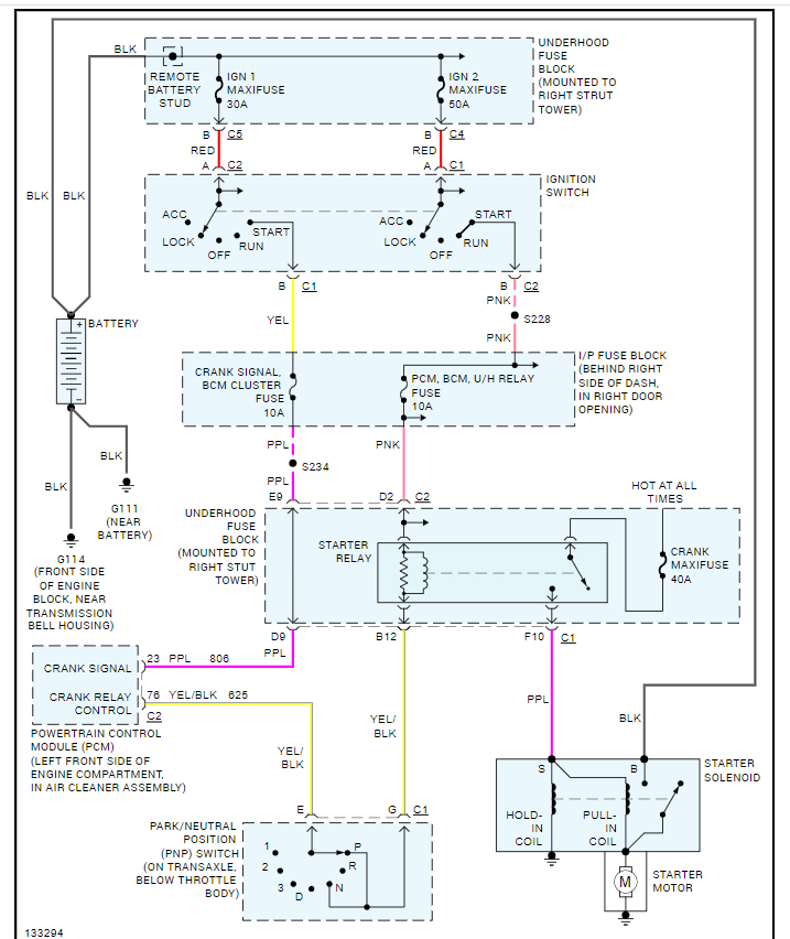 I recently contacted you guys about my car listed above about to know crank when you hit the switch the lights go out in the dash soon as you let off the switch they come back on. But just before all this happened one of the turn signal lights on the driver side well the only one on the driver side wouldn't flash so I pulled it out of the socket looked at it it's also part of the daytime running lamp system there's a wire there's four wire four prongs in there but one of the prongs is missing so I took a wire and stuck it in there the kind of rig it up but from that point on my hazard lights went flashed they still don't flash and the car started acting the way it is does that have anything to do with anything I mean could that possibly not make my car not start or act the way it is like this or act the way it's doing is there any way I can bypass the daytime running lamps if that's the cause any kind of help with be great right now all I'm trying to do is get this thing running so I can get my butt back home to Tennessee! I pulled the starter on it Mike's phone and starter I did find some wires aren't in casein and like they're supposed to be from Factory so I bought some and I put it on it, it did look like wires are getting kind of hot because they are kind of close to the exhaust so I made sure everything's pinned up but it should be and I still have I don't know I thought it was a starter I did it bench test on it started fine like I said I'm still I don't know I'm confused I don't know what to do next. As I told you before someone told me it might be the ECM but in y'all said it's not pointing in that direction is there any other inline fuses I should be looking for maybe I don't know because before I fix that turn signal light I pulled the ground I didn't pull it off I took it off the battery the ground cable and it started fine you know what I mean I started it to move it to where it's at right now shut off everything seem normal I put the cable back on after doing the turn signal light and it's doing what it's doing.