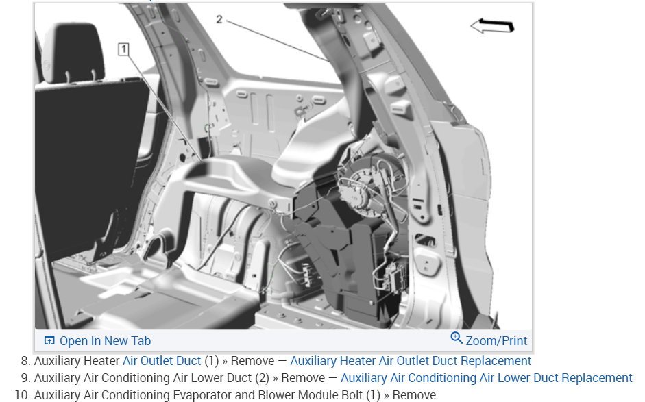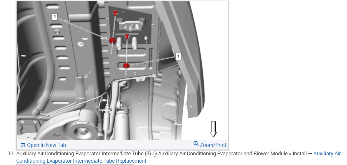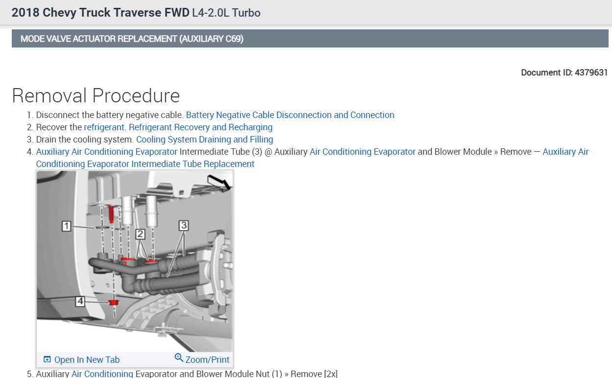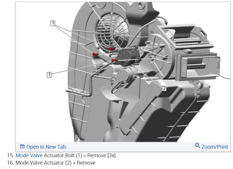 This happens when the rear mode actuator goes out, the way the manual wants you to do it is to remove the complete A/C-heater module, but I think you can loosen and gently pull the module to access the mode actuator without undoing the hoses and A/C lines. Here is the recalibration procedure which can be done without a scan tool. I have included the way the manual wants the job to be done as well. If you can't get the actuator removed this is the way the job is done, this guide will help you vacuum down and recharge the system. Please check the diagrams below for the repair job.