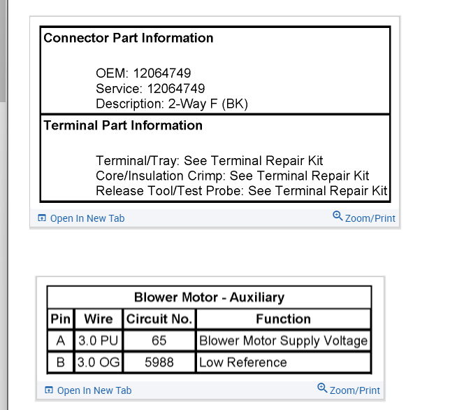 I suspect you will have to replace the blower if you have power back at the connector. So I am attaching the info to be able to test for voltage at the blower.