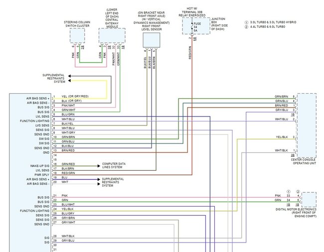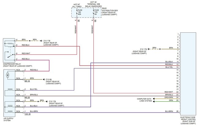 That system is a real %GER&& V to work on. Basically you have 4 ride height sensors that talk to the chassis control module. That module then tells the ride control module and the compressor and it's control solenoids where to add or subtract air so that the car will ride level with the load in it.