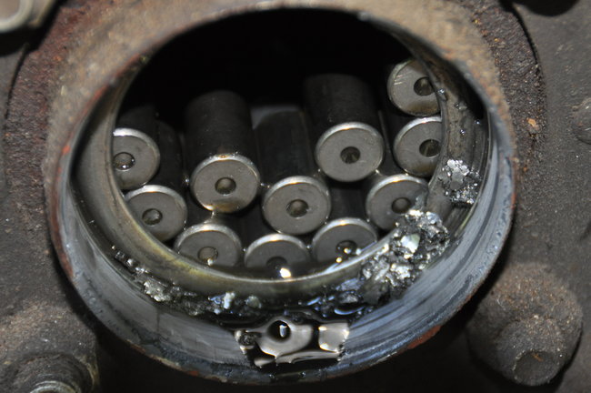Thanks for everyone's help. Still do not know for sure (likely low lubrication) what caused the bearings to come apart. I had used a China made $20/each bearings from Napa (did not know there were premium bearings).