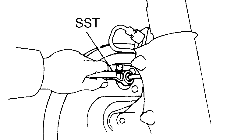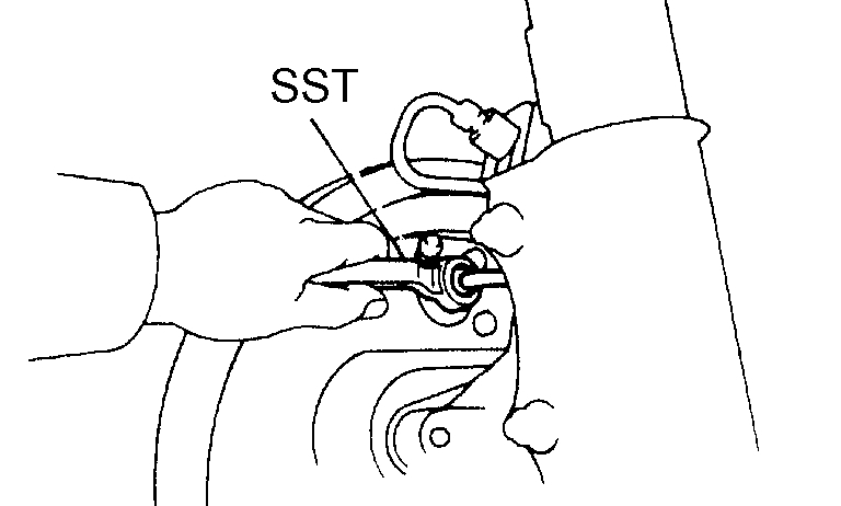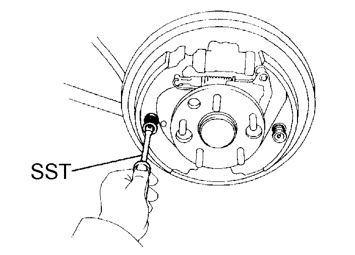 a. Using SST, install the front brake shoe, pin, shoe hold down spring and cup.