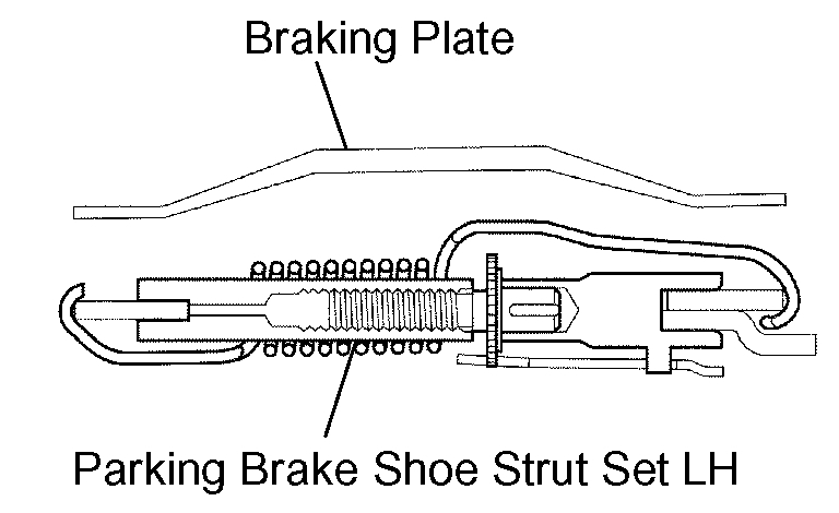b. Install the parking brake shoe strut set LH as shown in the installation.