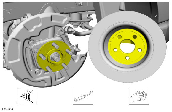 WARNING: Service actions on vehicles equipped with electronic parking brakes may cause unexpected parking brake application, which could result in injury to hands or fingers. Put the electronic parking brake system into service mode prior to servicing or removing rear brake components. Failure to follow this instruction may result in serious personal injury.