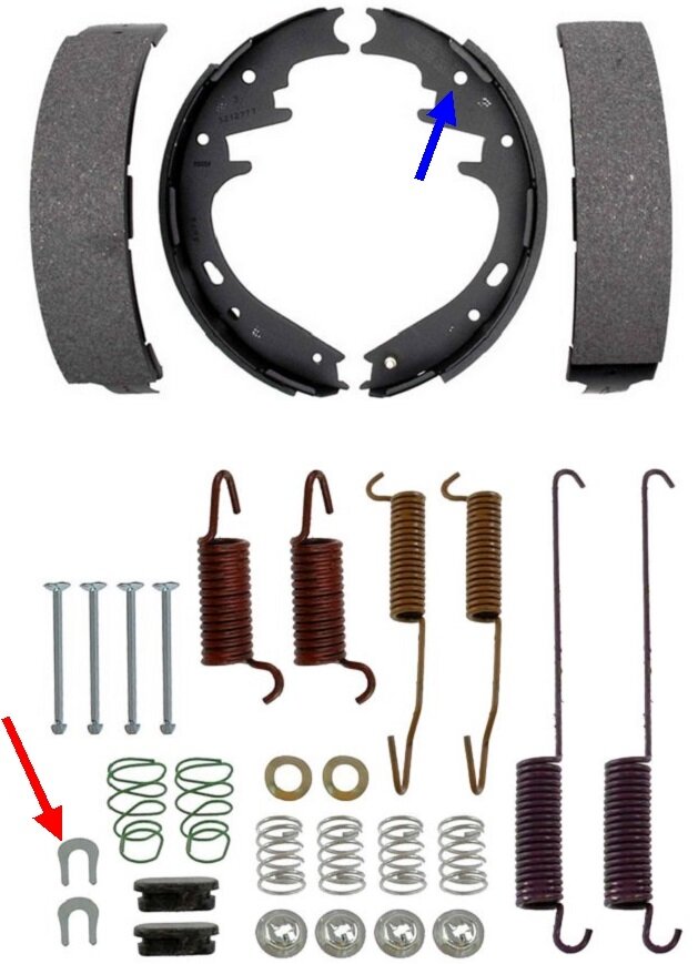 That holds the parking brake lever to the brake shoe at the hole by my blue arrow. Those clips are often reused. It's the return springs that should be replaced during a professional brake job. The color they're painted denotes their strength. That strength weakens from repeated heating cycles over time.
