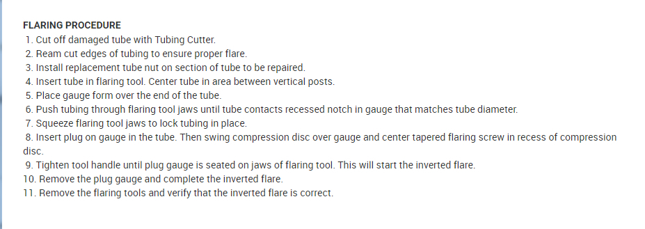 Special bending tools are needed to avoid kinking or twisting of metal brake tubes. Special flaring tools are needed to make a double inverted flare or ISO flare.