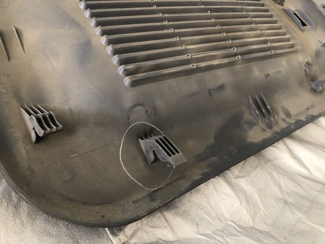 5) Grip the bottom of the plastic frame and lift upwards to remove it. See picture of the hooked plastic retainers. Do not pull straight back, you will destroy hooks.