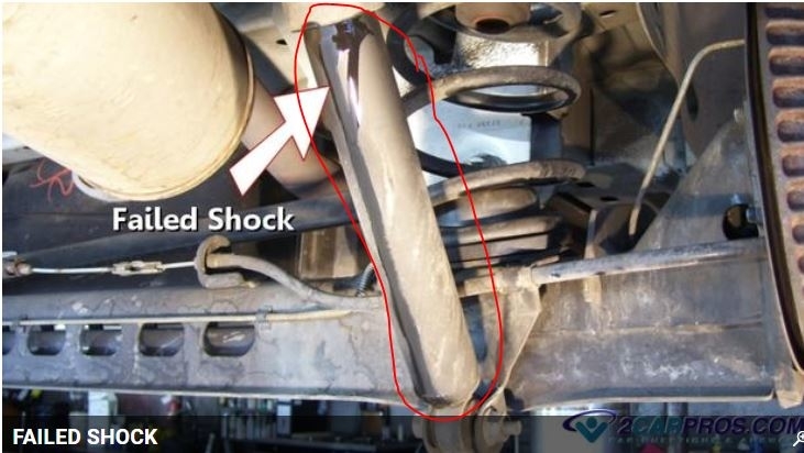 Now, if you feel a vibration when this happens, check the right rear shock to see if it is leaking and bounce the vehicle on that side to see if it seems weak. If the vehicle continues to bounce more than three times when you stop, the shocks should be replaced.