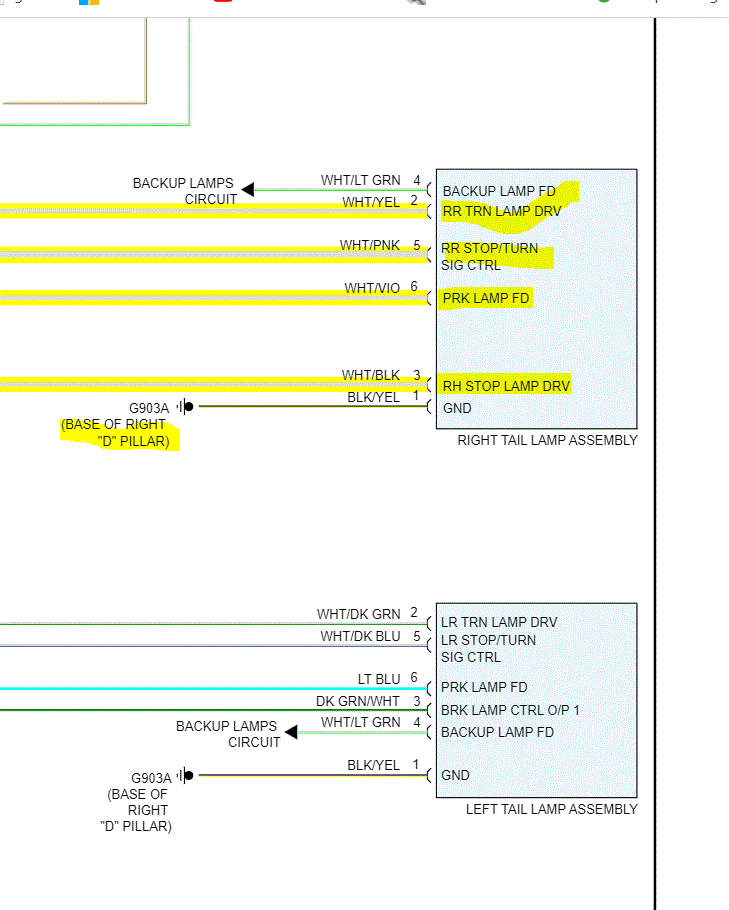If possible, disconnect the light connection. Check each of the wires indicated below for power under the selected function the wire indicates. If they do have power, confirm there is continuity to ground via the black wire. If you have power and ground, replace the light assembly.