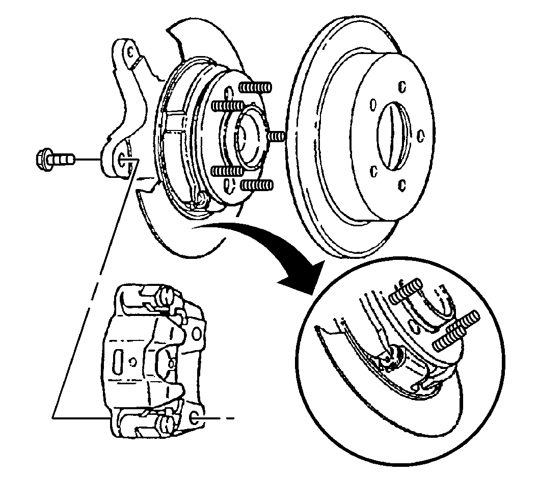 7. Install the rear brake caliper with the rear brake caliper bracket.