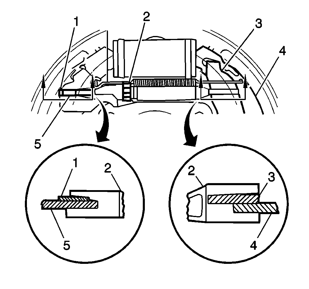7. Important: Ensure that the adjuster (2) engages the brake shoe (4) and the park brake actuator (3) properly.