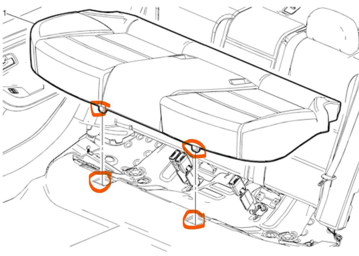 To remove the lower cushion, get in the car and put one hand at the bottom of the seat about shoulder width, now pull straight up hard. The clips can be difficult to release. Then lift the front of the cushion up and release the rear clips. Now you can get to the rear belt bolts.