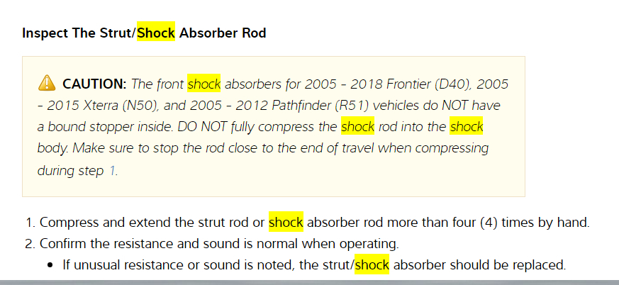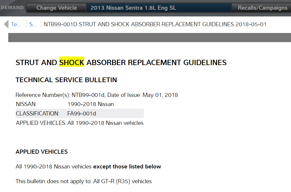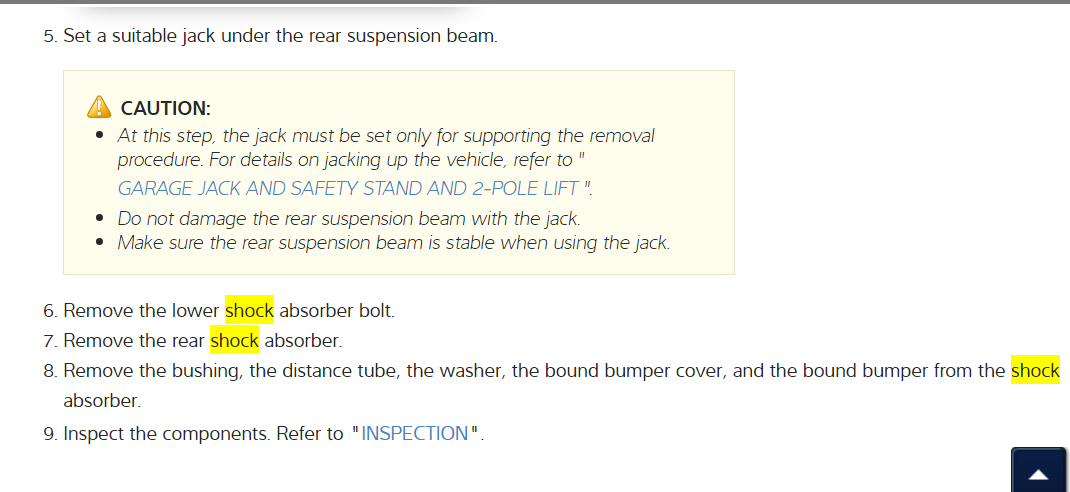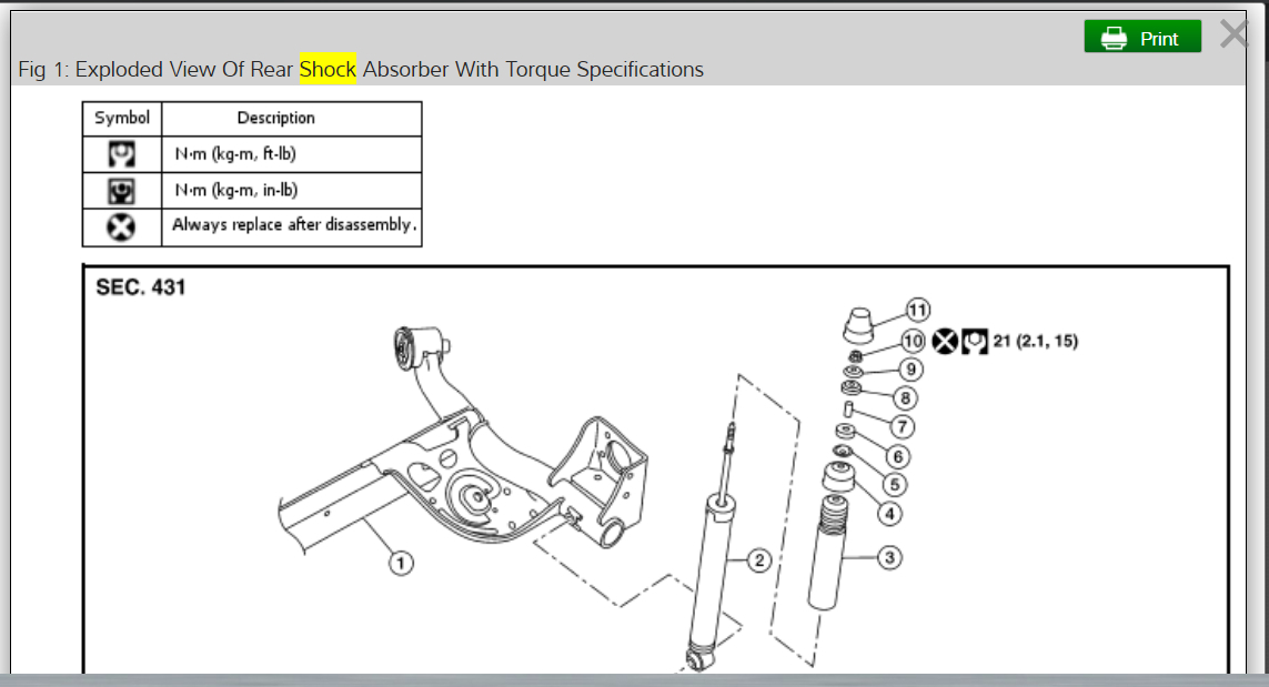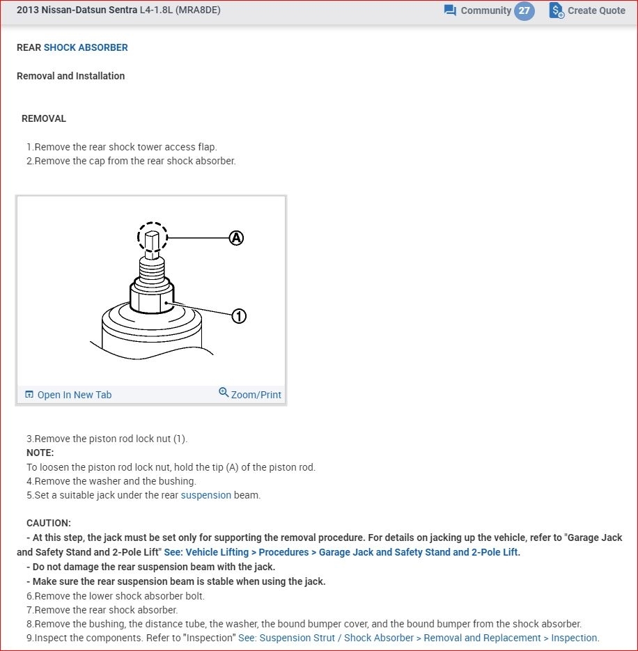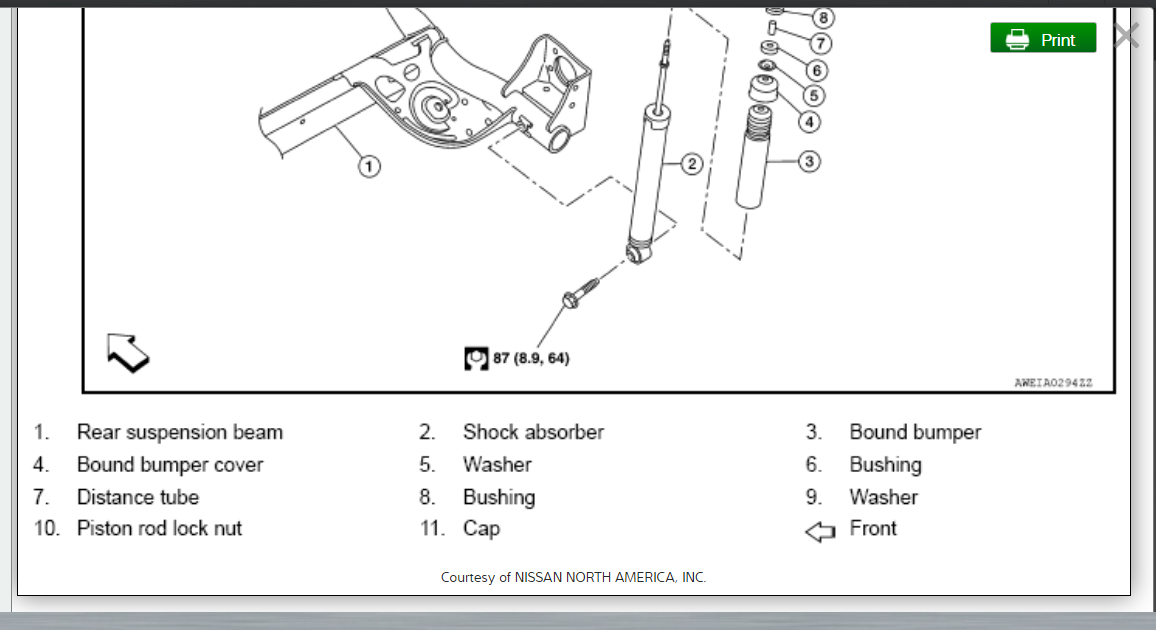 I have included in the diagrams down below a Technical Service Bulletin (TSB) for your vehicle's rear shocks from Nissan, as well as step by step instructions on the removal and installation of your vehicle's rear shocks. I have also included a link below for you to go to: