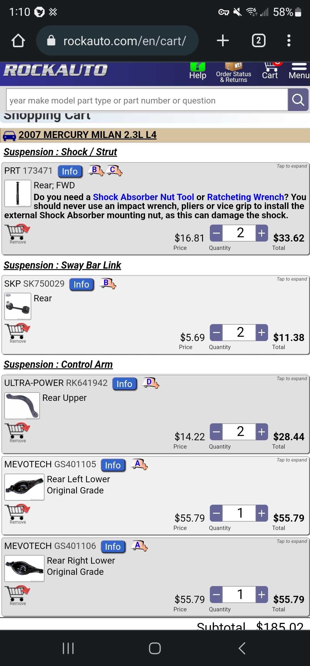 Sure, here are the instructions to replace the items on the list including the lower control arm, sway bar link and the rear shocks. Check out the images (below). Please let us know if you need anything else to get the problem fixed.