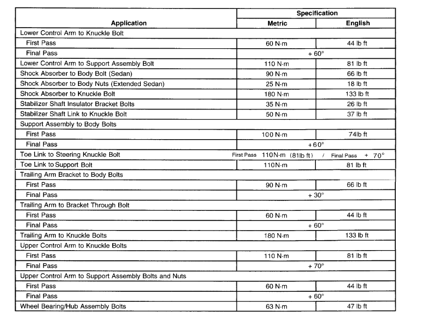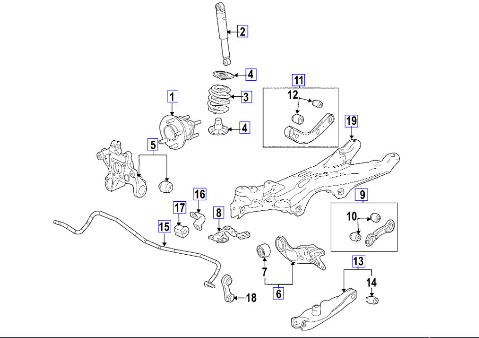 1). Rear rearward lower control arm (to frame and to knuckle).