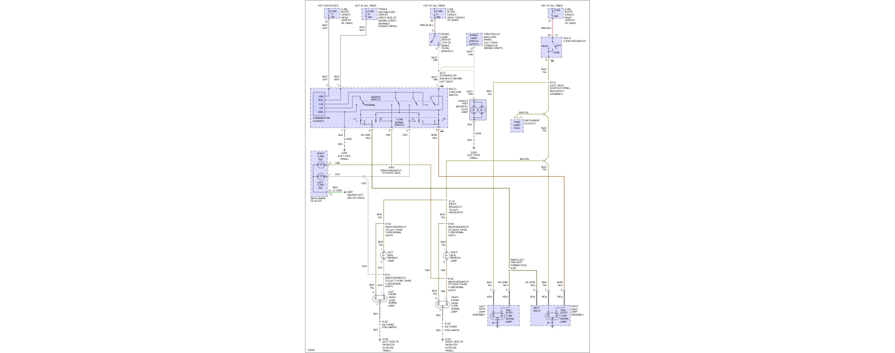 If the fronts are working okay, I do not see no need to worry about the left rear then, simply because the splice for it is before the splice for the fronts. So, check the voltage again on that black/yellow wire where it meets up with the other black/yellow wires, the one that feeds the fronts and the one that comes from the multi-function/headlight switch.
