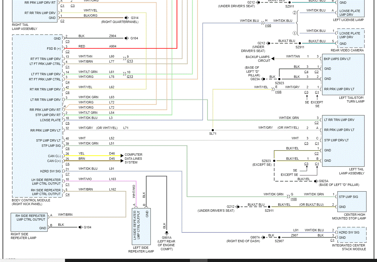 I attached the wiring schematic below for the exterior lighting circuits for your review. At some point, we have a short to power keeping the light or lights on. Take a look at it and let me know if you recognize the wiring that was involved with the camera installation.