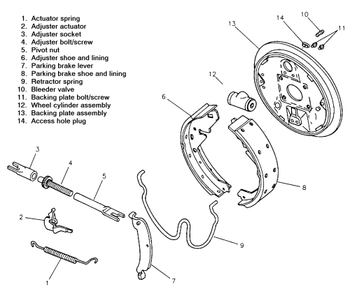 The spring itself sets in a clip on the rear backing plate behind the axle flange. I remove it last and install it first. That way the shoes does not cause issues with it fitting easily. I normally install the trailing shoe first, then hook the spring to it. Next install the leading shoe. Now comes the issue of installing the spring. Lisle 50600 is the "special tool for it. I use a large pair of channel locks with a piece of aluminum strip to pull the spring into place.