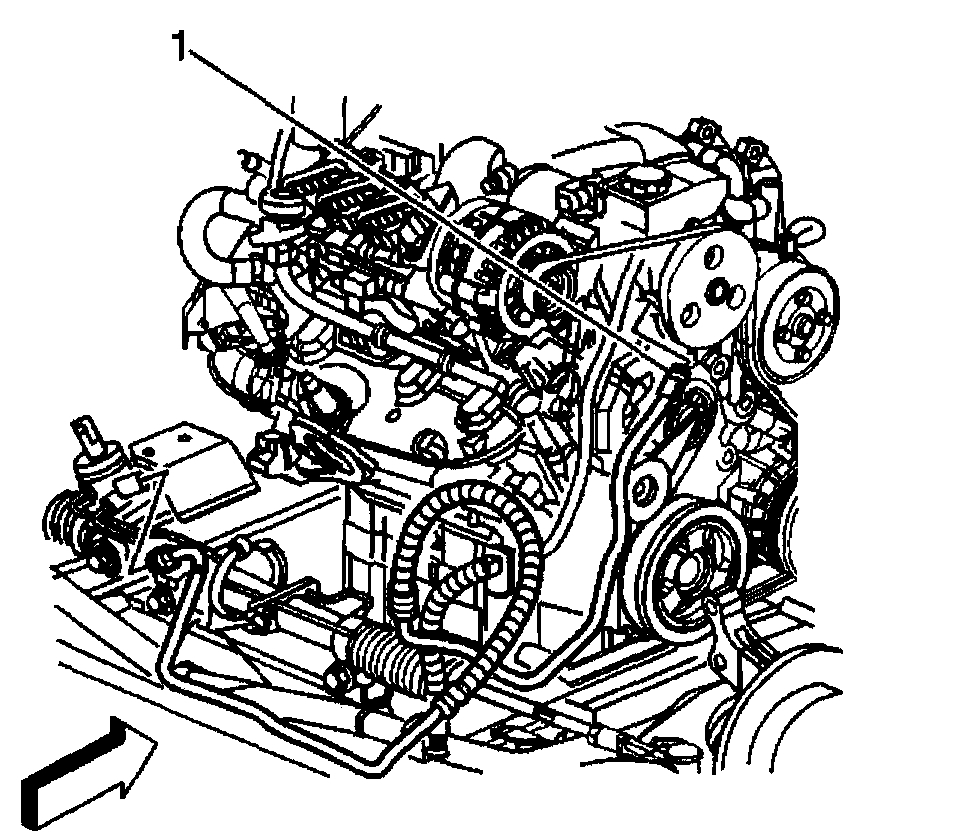 6. Remove the power steering pressure line (1) from the clamps on the power steering gear.