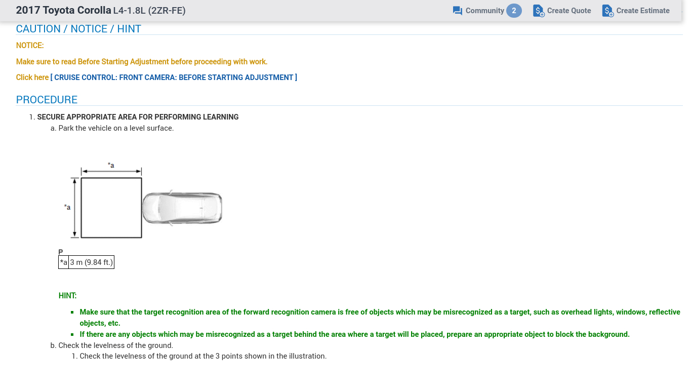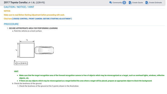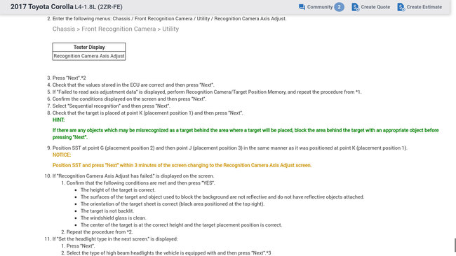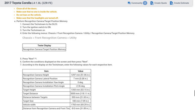 I want to make camera adjustment to the vehicle. The software need to put the vehicle information in memory (lateral position, yaw angle, pitch angle, target height, vehicle width, etc.) And this information found in repair manual. Can someone help for getting repair manual?Thanks