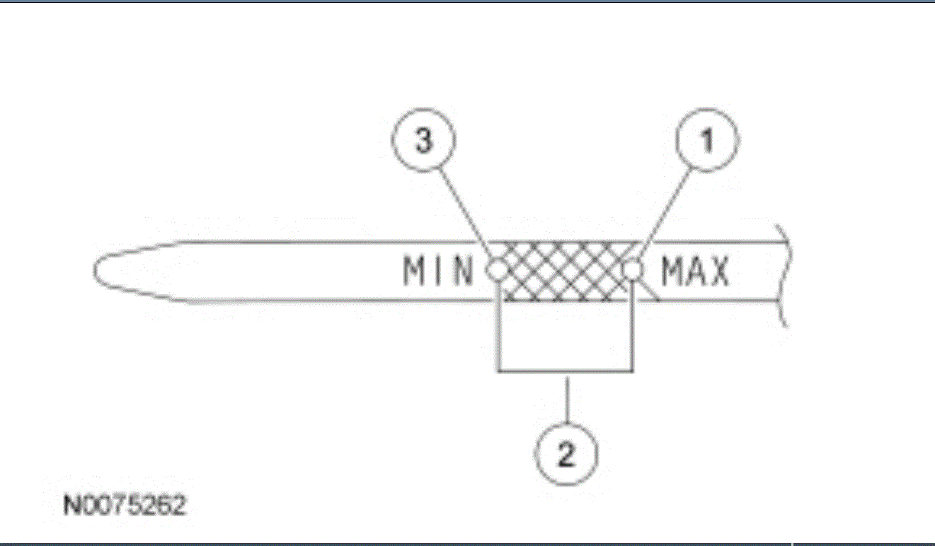 Remove the transmission fluid level indicator. The transmission fluid should be within the designated areas.