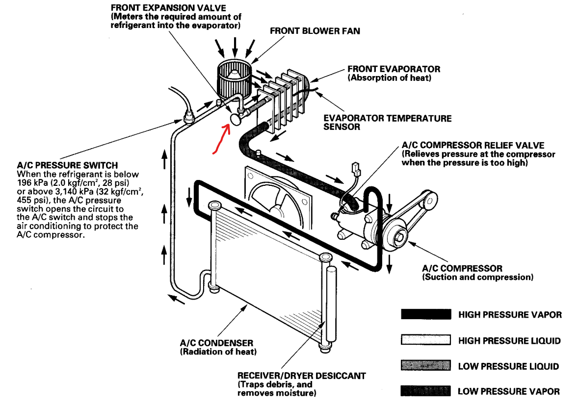 Wow, that is a good one, have not heard that before but I would have to say the expansion valve is stuck wide open which will make this kind of sounds. Can I ask if any AC work has been done lately? Also, have you tried added refrigerant? Here is the part that has failed, please go over this video and I have included the location and the instructions on how to change the expansion valve out. Thanks for the video, it helped.