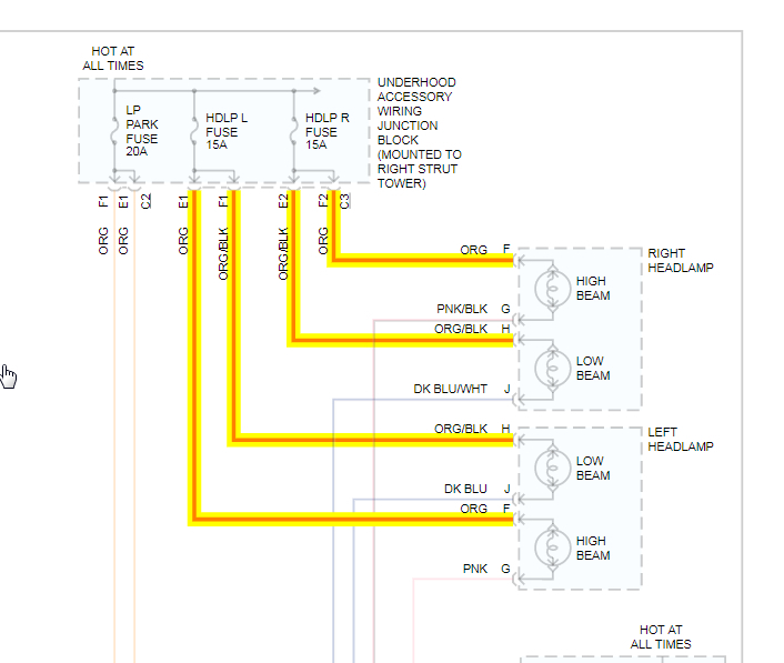 Is there a separate relay for the main headlamps and a separate relay for the high beams? Also, is there a separate fuse for each of these headlamps?