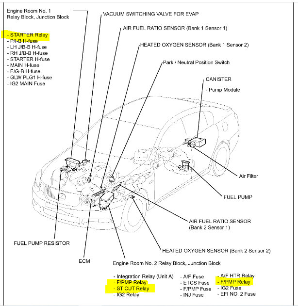 I'm not sure which relay you are looking for, but since it isn't starting, I assume it is either the fuel pump relay or the starter relay.