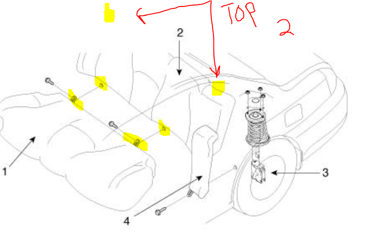 Pic 2 shows the upper bolt on the driver's side. There is also one in the same location on the passenger side.