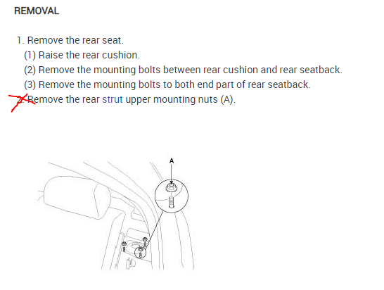The bottom portion of the seat needs to be removed first. There are two bolts that hold it in place along with the seat back. Once it is out, there are two bolts, one on each side of the upper portion of the seat back. Remove them and the seat back will come out.