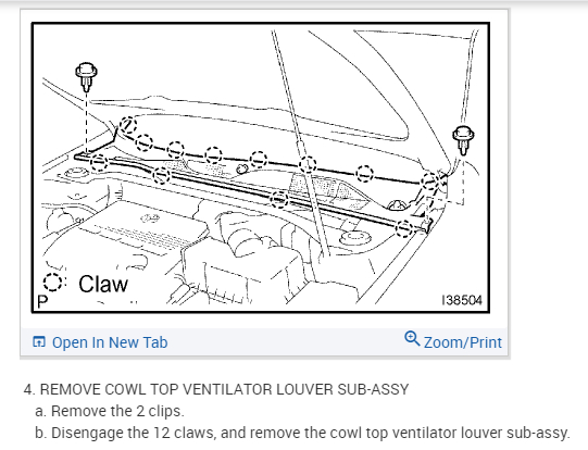 My vehicle listed above (convertible) was parked at a friend's farm for about a year. It now stinks of mice, especially when I use the climate control (heat/AC). Where can I find diagrams showing how to remove the cowling (near the wiper blades?) And the vent grills so that I can look for and remove mice nests/mess.