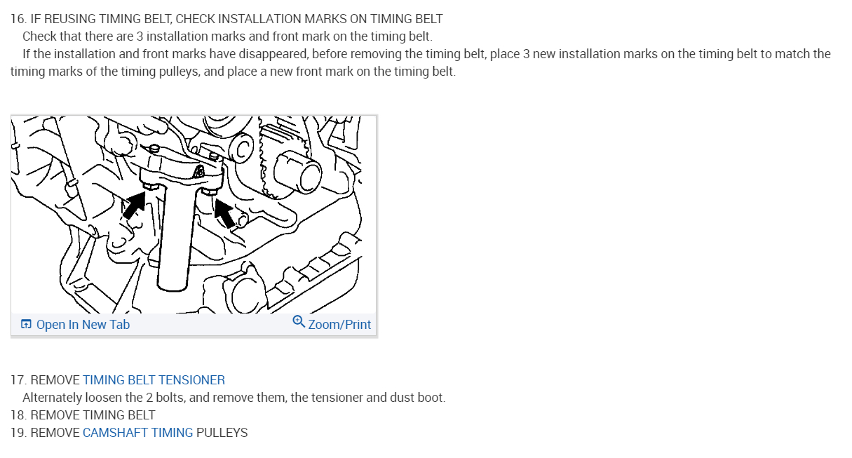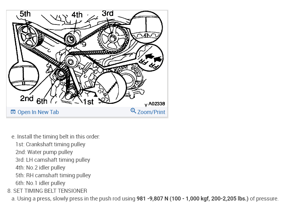 It's not too bad to replace the timing belt, you just need to take your time and follow each step, start by draining the coolant and disconnecting the battery. It is best to replace the timing belt tensioner pulley because they go out often. They have you remove the timing belt pulleys I am not sure why I guess they can wear as well so check that. Here are the steps to replace the timing belt in the images below. Sometimes you will need to refresh the page to open the images. Sometimes this bug happens, we try to fix it. Check out the images (below). Let us know what happens and please upload pictures or videos of the problem.