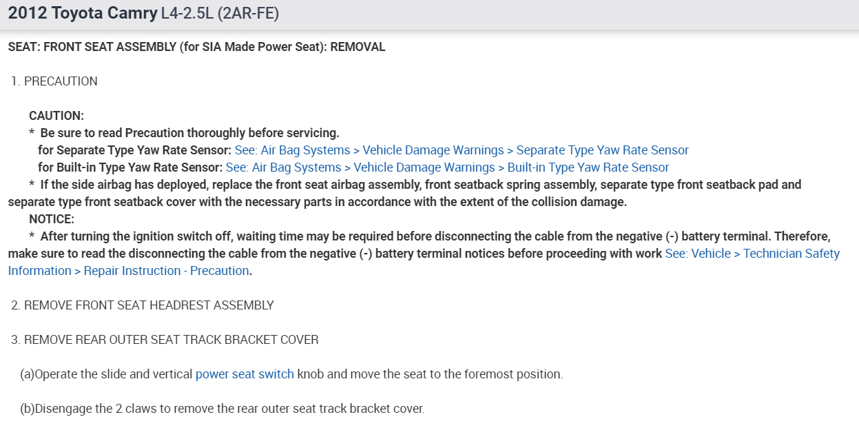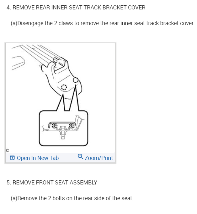 How do you remove the front power seat from a Camry SE? Having trouble locating the 4 bolts and I don't want to tear up the decorative plastic hiding the bolts. Then I would like to remove the hog rings that you sit on and put the seat back in. These horizontal rings hurt after a few minutes in the car. So I want to remove the horizontal wires and add a 1/2" thick cushion under the fabric.