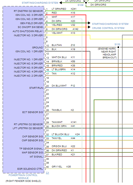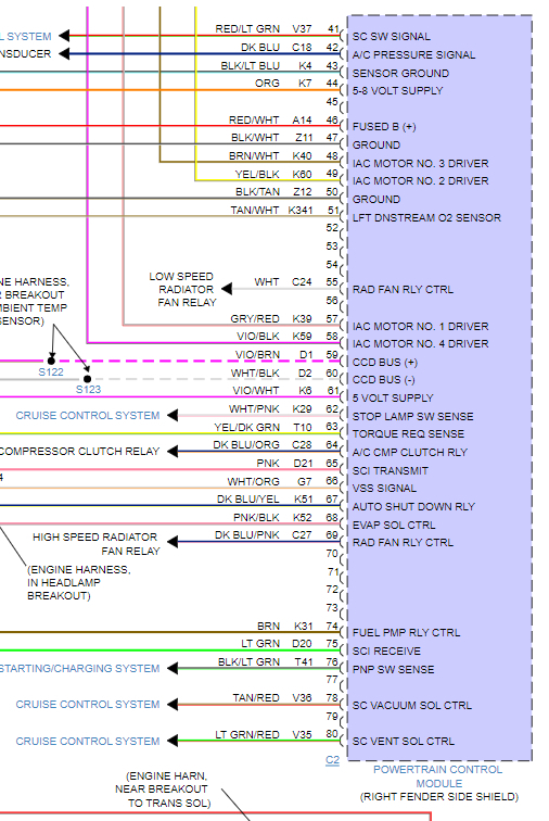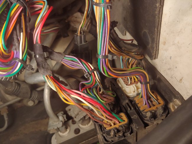 I know writing down the wire coloring for each connector will take a little while, but it's the only way I can identify the correct circuits. There are way too many wiring diagrams to go through, and I don't guess when it comes to electronics. One wrong move and a $1,000.00 computer gets cooked. So, I think we should do it this way. I think I count six connectors. And do they all go into one bulk harness below the connectors? and if so, where does that lead to?