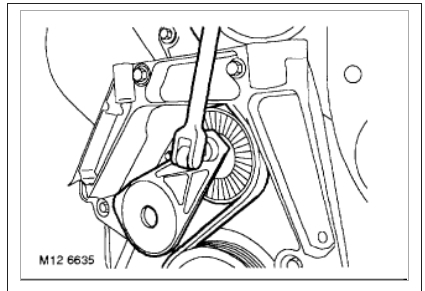 Using a 3/8" square drive socket bar, raise ancillary drive belt tensioner and fit drive belt to pulleys.