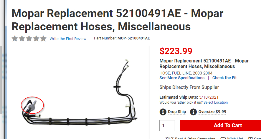 My vehicle listed above popped a check engine light. The codes showed an Evap leak. So we took it to a mechanic. He found which parts need to be replaced but one of the parts is discontinued. That part is 52100557AI. It is the valve on the fuel pump sending unit. I am unable to find a replacement online and was wondering if there was another part I could use instead.