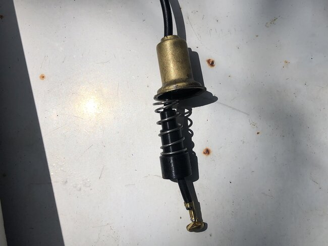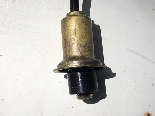 6- pass new wire and contact through center of steering shaft and exit through hole. Cut wire to length, slide wire cover over wire and push into hole, strip back end of wire and slide into "brush" contact and solder.