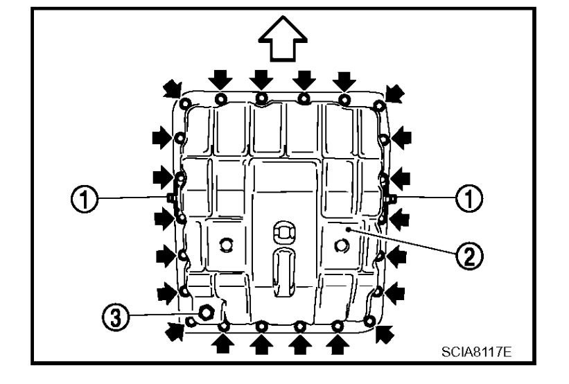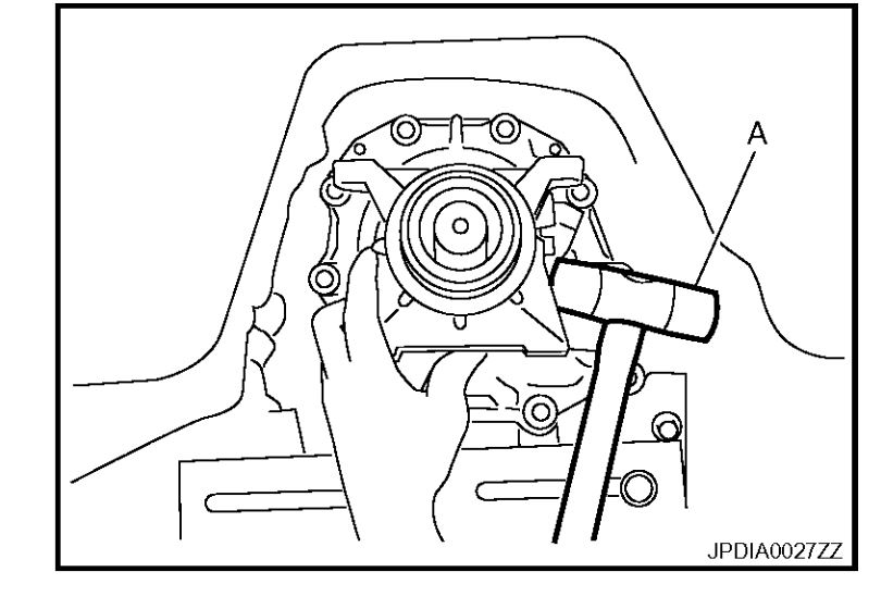 CAUTION: When setting transmission jack, place wooden blocks to prevent from damaging control valve with TCM and transmission case.