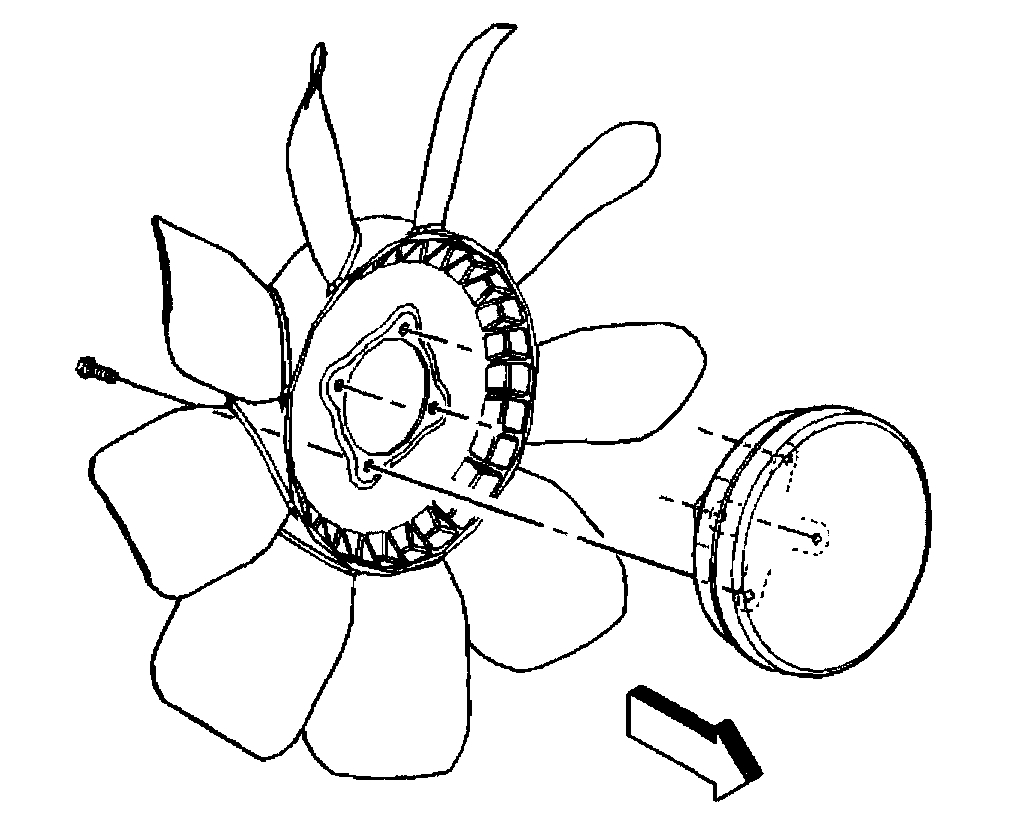 4. Remove the bolts retaining the fan blade to the fan clutch.