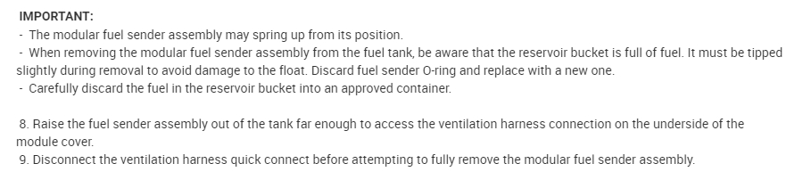 If you look below, I attached the directions for the fuel pump sender assembly replacement. These directions explain how to get the assembly from the tank. Once out, you will need to take things apart to access the filter.