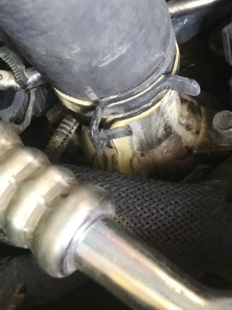 I am trying to replace the thermostat on my truck. The mounting bracket has 2 mounting bolts, the right one is easily accessed but there is an interference to the left one because of an overhanging chrome colored tube directly about the mounting bolt. I need to know how to remove that tube, so I can access the left most bolt.
