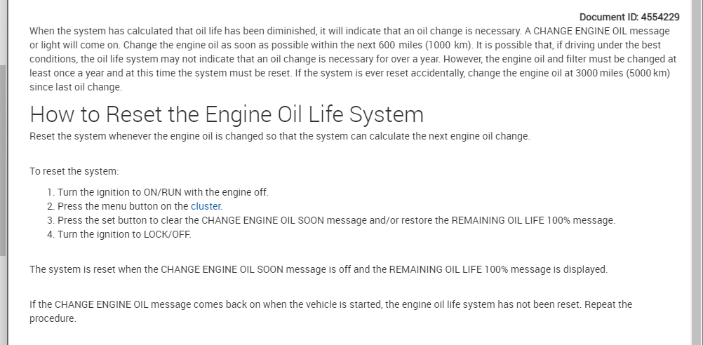 Hello, I can’t seem to reset the Engine Oil Life System. I changed both the oil and oil filter. I tried to reset the system like it said to do in the owner’s manual, but every time I start the car the Code 82 keeps coming up on the DIC display. I have done some Google internet searches and did what they said to do, but nothing works. I even called the Dealer where we brought the car and asked them what to do. I was told that we would just have to bring the car in and let them look at it. There price would be from $100.00 and up to check it out. Vehicle listed above has A/C.